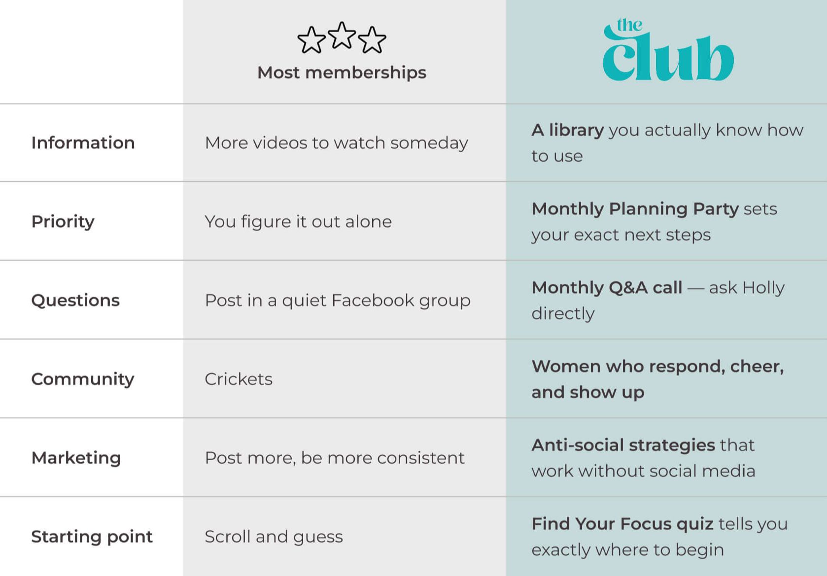 "The Club isn't a course. It's not a coaching program. It's the place you come back to every single week to use the tools, get your questions answered on a live call, and move forward with people who actually get it."