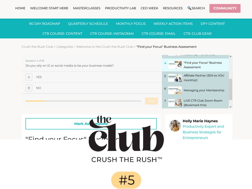 Bring your real question. The one you've been sitting on. The offer you can't get out of your head. The tech thing that's been blocking you for two weeks. Holly answers live. Other members learn too. It's the call everyone looks forward to.
